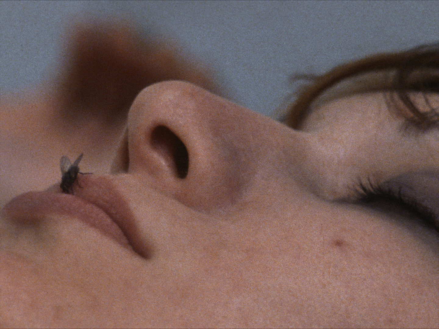 Généralement plus connue pour son travail plastique, musical ou militant, Yoko Ono a réalisé un grand nombre de courts-métrages expérimentaux bousculant complètement les modes de représentations audiovisuels de son époque. Dans Self-Portraiten 1969 par exemple, elle filmait l’érection de son conjoint en slow-motion, durant une quarantaine de minutes, autant une ode à l’amour qui l’unissait à son époux qu’une réflexion sur l’existence sociale des femmes dans la société hétéronormée qui est la notre. Pour se représenter elle-même, elle choisit de montrer le désir qu’elle suscite auprès d’un homme auquel elle est liée; ne dit-on pas d’elle que célébrité est due à sa relation amoureuse avec une star de la musique ? DansFly, Yoko Ono fait de son héroïne une mouche noire, qui n’a de cesse de poser encore et encore sur le corps nu d’une femme, au son de ses propres vocalises, comme autant d’interprétations possibles: la fatalité de la mort, représentée par l’insecte, le parasitage de l’Orient par les forces occidentales, en pleine guerre du Vietnam, ou encore les fléaux du patriarcat sur l’existence des femmes.
